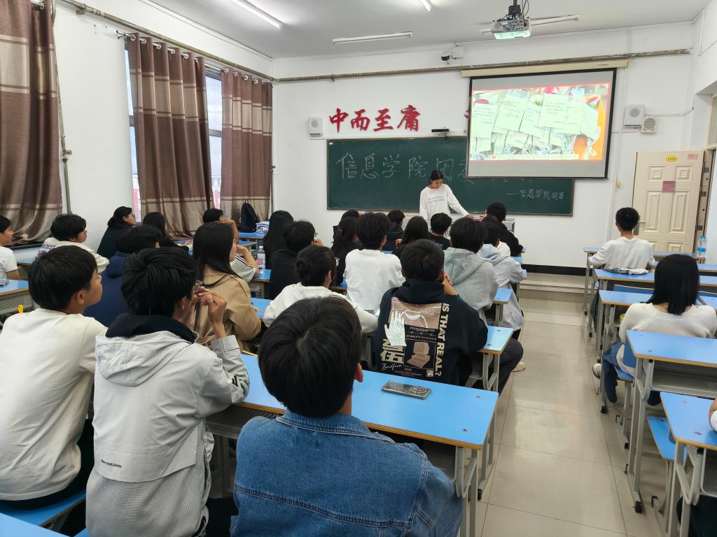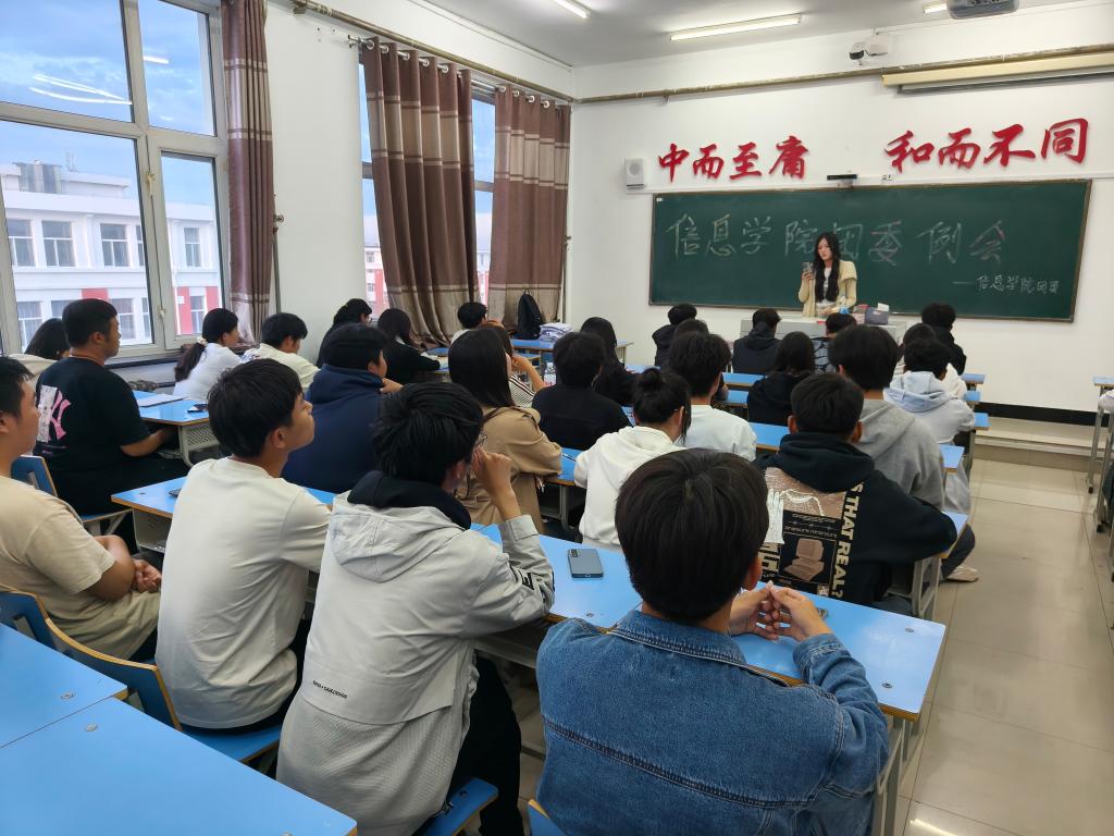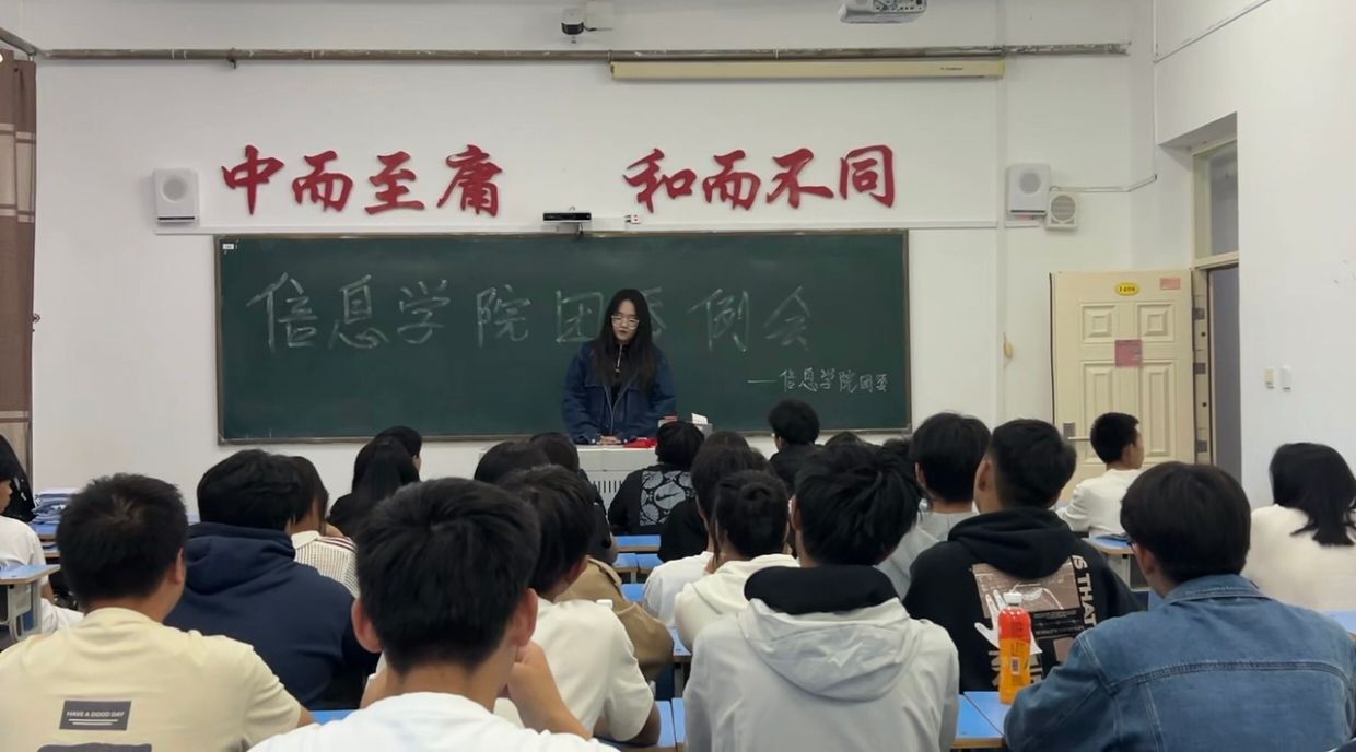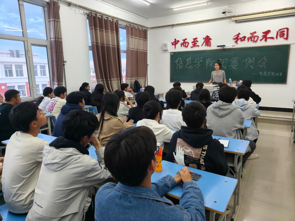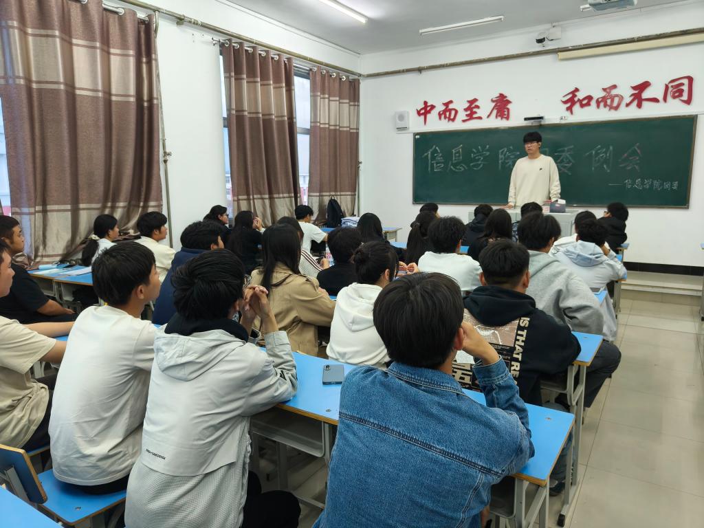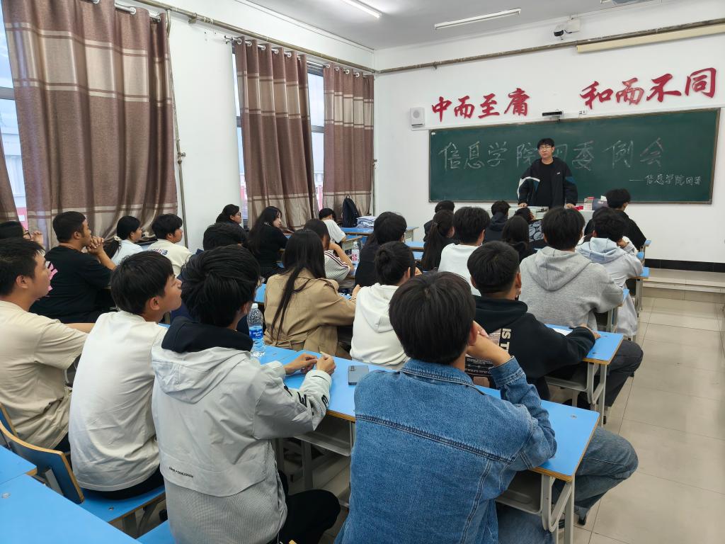 会议开始,史云辉老师围绕团委组织架构展开详细讲解,重点介绍了宣传、青工,组织、纪检四个部门的基本职责与核心任务,其中,宣传部负责学院团学活动宣传策划、新媒体平台运营及校园文化氛围营造;青工及组织部门聚焦青年学生成长需求,统筹开展志愿服务、社会实践等活动;纪检部门则承担团员纪律监督、团内规范执行等工作,各部门职责清晰、衔接紧密,为后续团学工作高效推进奠定基础。随后,史云辉老师在提及新学期纳新工作时表示,本次团委纳新打破以往仅面向团员的限制,首次将非团员纳入招募范围,这一调整旨在进一步扩大人才选拔覆盖面,吸纳更多具备责任心、有服务意识的优秀学生加入团委队伍,推动团学工作焕发新活力。最后,团委副书记焦滢橘及各部门部长上台进行了自我介绍及各自的工作阐述,史云辉老师特别叮嘱全体同学:要以高标准投入团委工作,主动与各部门互相配合、高效协作,齐心协力为团委发展贡献力量。