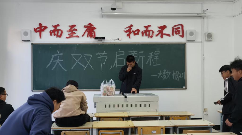 2025年10月5日,大数据251班全体同学于1#1113教室开展“庆双节 启新程”主题活动,以派发月饼的简单仪式,共贺国庆与中秋双节,让异乡求学的青春身影在集体中邂逅团圆暖意。